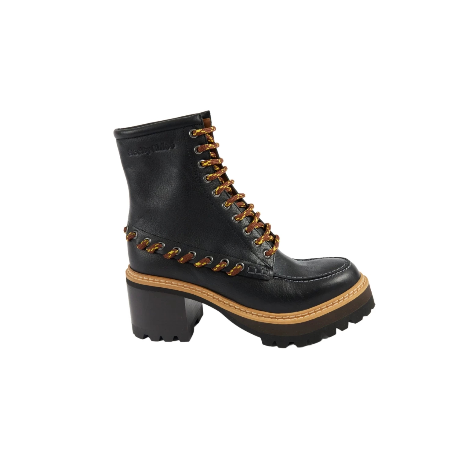 Ein Mix aus derbem Stiefel und femininer Stiefelette. Der coole Boot überzeugt durch eine breite Profilsohle in Kontrastfarben und 6,5cm Blockabsatz. Kontrastnähte sowie besondere Schnürdetails geben dem Boot moderne Hiking Elemente und runden den Look ab.